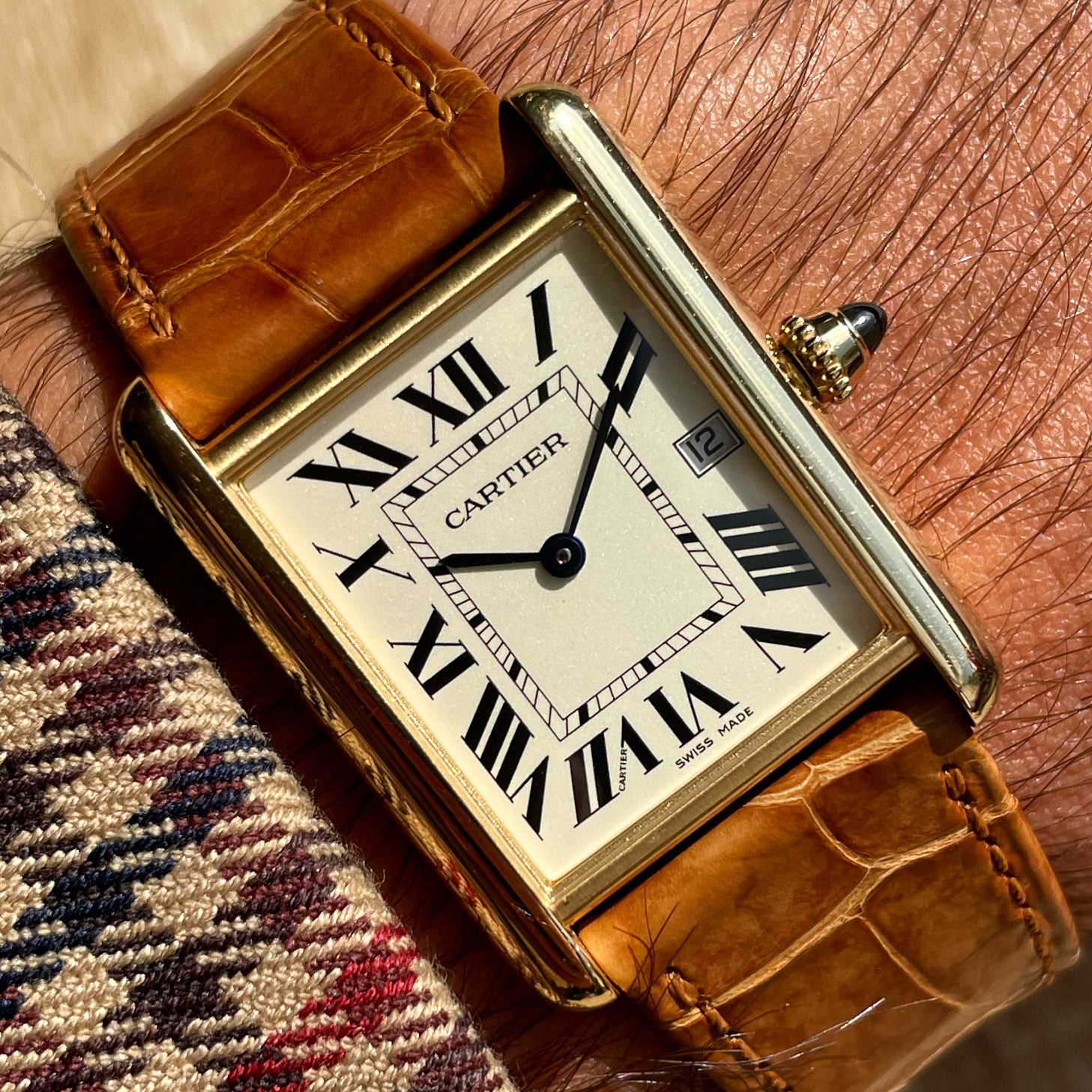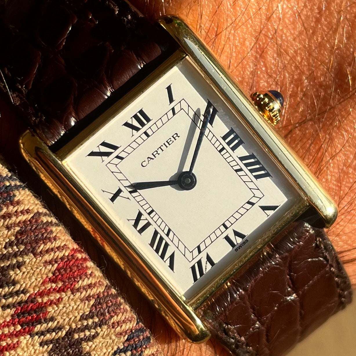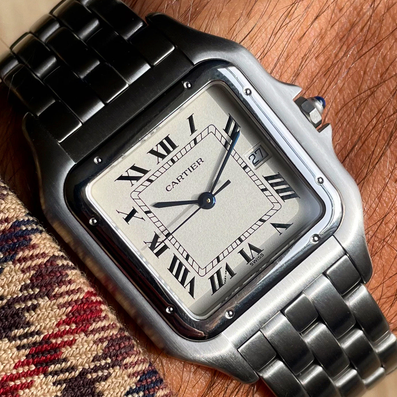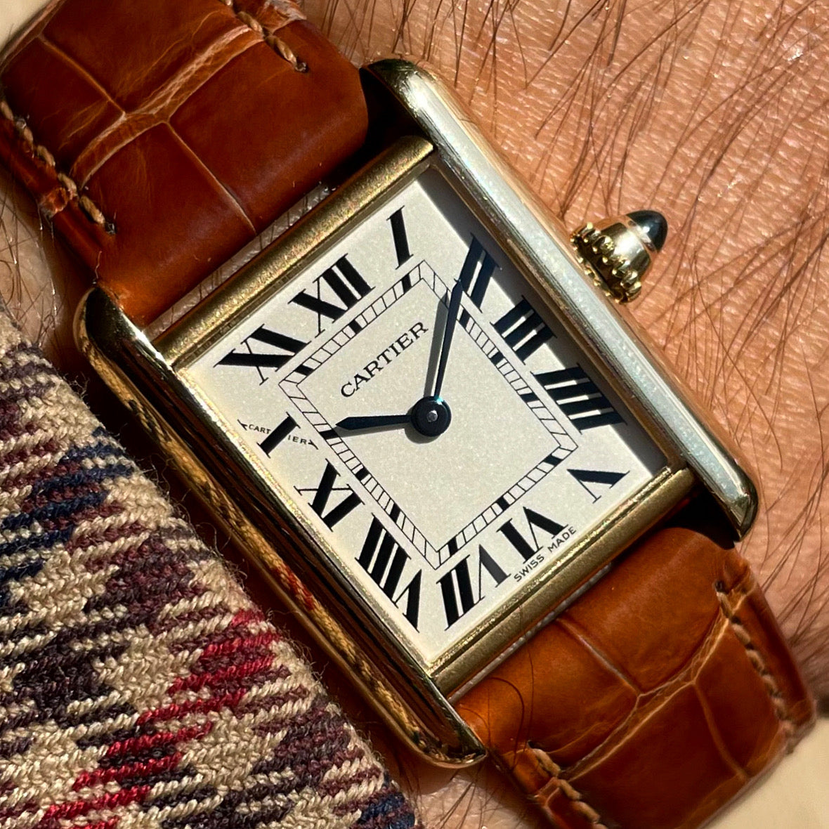 His Cartier inventory regularly includes Tank Louis, Santos Galbee, Panthere, and Santos Dumont references spanning the 1970s through the early 2000s — precisely the vintage-eligible era that Archiva documents. As a founding dealer, Alex Stevens Vintage contributes photography to the Archiva reference archive, helping build the definitive visual record of these watches.